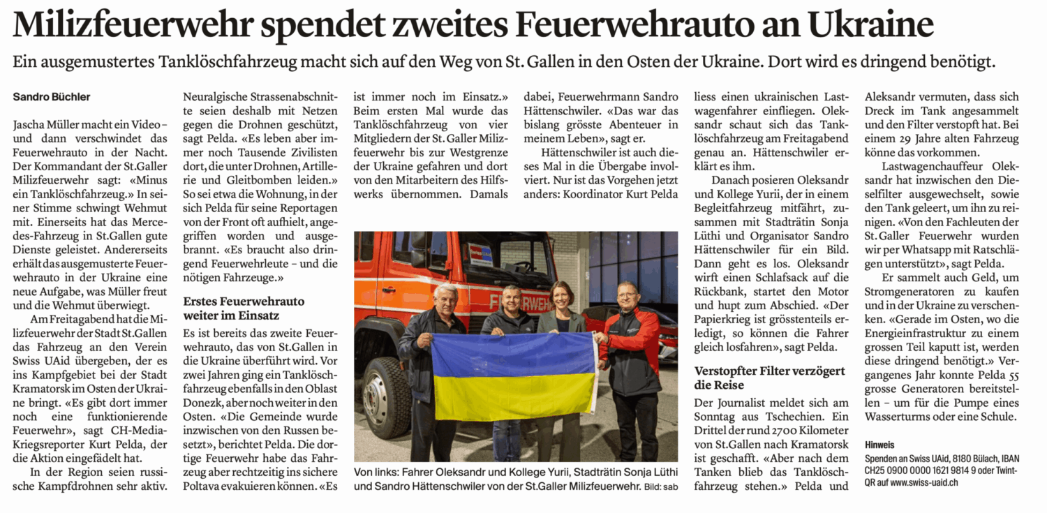 Milizfeuerwehr spendet zweites Feuerwehrauto an Ukraine